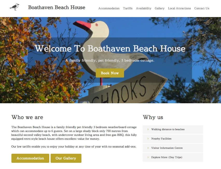 Boathaven Beach House in Second Valley, SA are an existing customer that needed a new website to replace one that had ineffective navigation. Llamablue create a mobile responsive website to beeter promote their bed and breakfast offering.