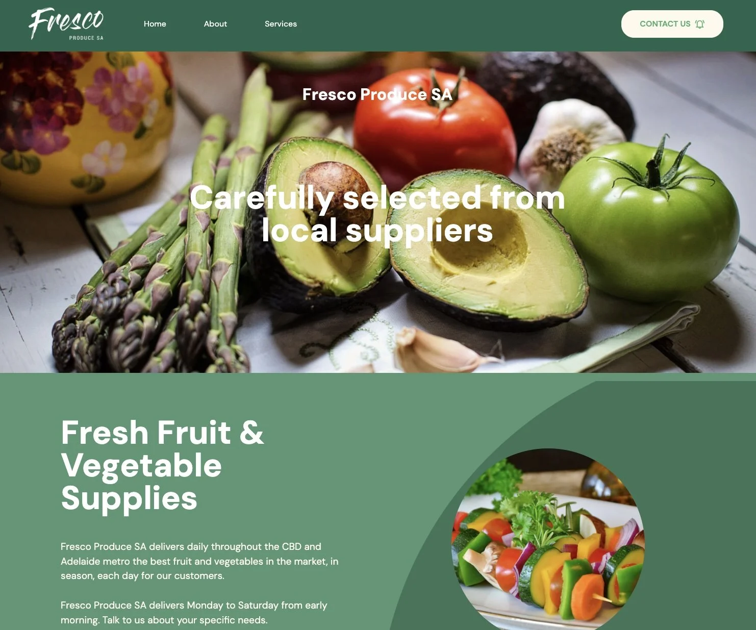 We worked with Fresco Produce SA, an Adelaide fruit and vegetable wholesaler initially to offer a method for their customers to place orders online and later with a change of business name and website design changes.