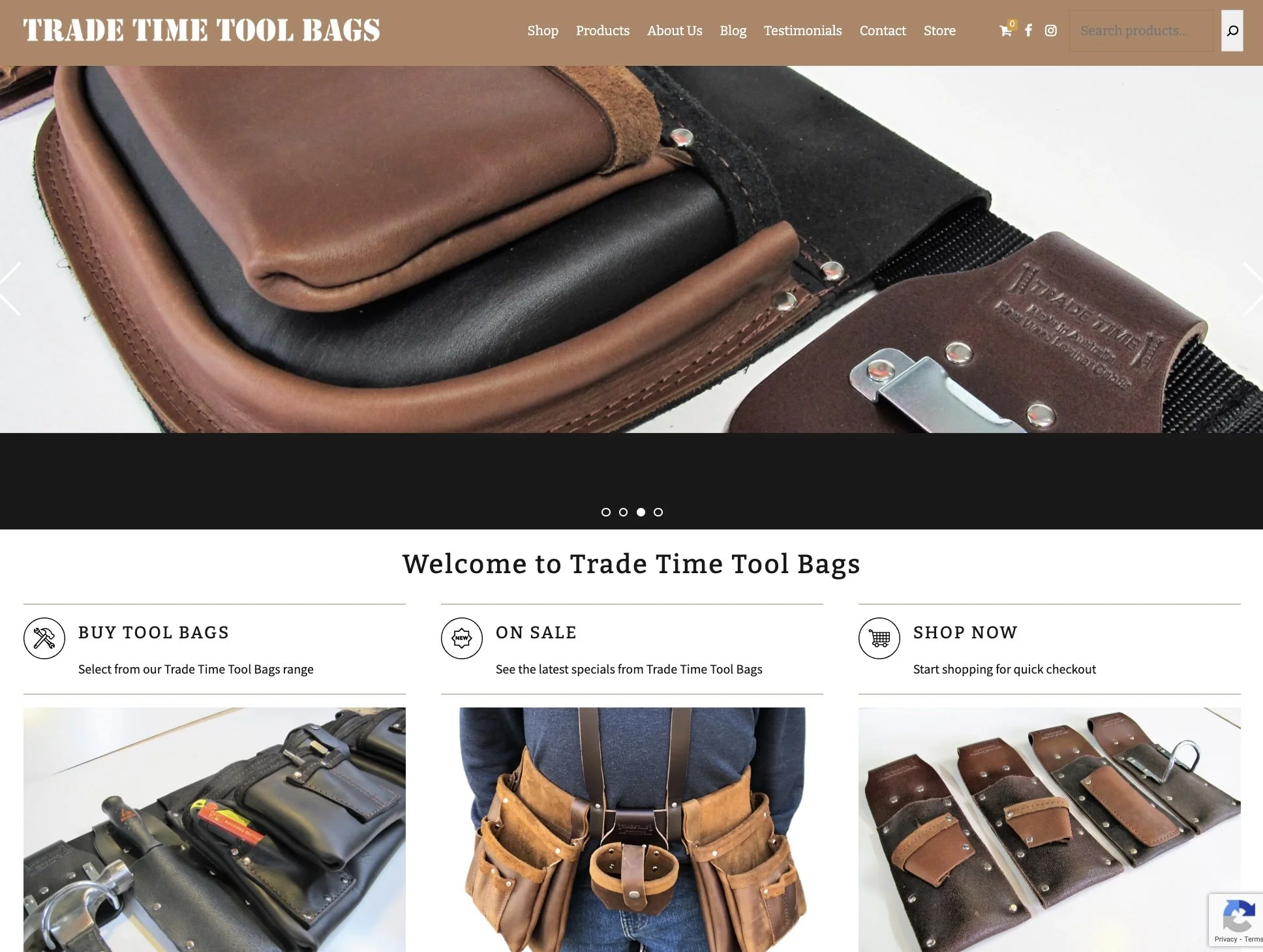 The new WordPress Website Re-design for Trade Time Tool Bags uses more visually attractive images to promote their handcrafted leather tool bags to potential visitors and provide a mobile responsive site for better engagement on mobile devices.